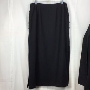 Maxi Skirt Suit Harve Benard Black Lightweight Wool Floral Embroidered