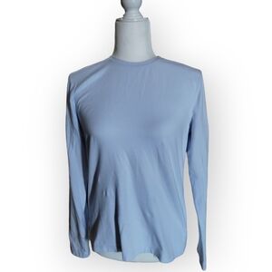 This baby blue long-sleeved top is so soft and stretchy.