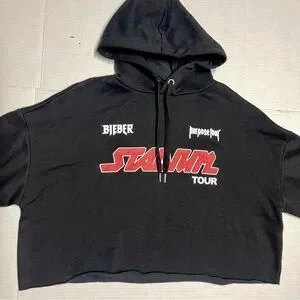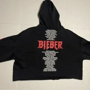 Justin Bieber Purpose Stadium Tour Black Cropped Hoodie Sweatshirt Womens Large
