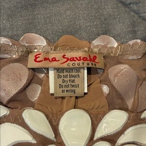 Stylish brown and white bikini set perfect for a day at the beach. Features a unique design for a standout look. Each item is handmade. The white panels sometimes get stuck together, but no issues when wearing.