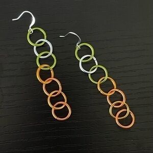 2/$29 Handmade Link Earrings 3.12” Lightweight Metal Green Orange Ombre