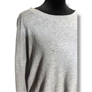 Good condition, tiny hole from fabric shaver (pictured); light gray with black elbow detail; very lightweight, perfect for spring or fall; Long sleeves and loose fit
