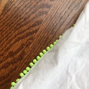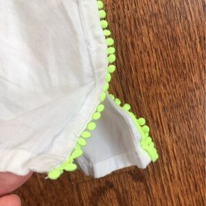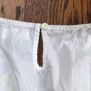 GUC short sleeve coverup that’s perfect for after the beach/pool, or for lounging around. Crisp white with embroidered flowers running down front. Neon yellow pom pom trim. V-neck. Cinched waist. There is a slight mark on back (pictured). Hard to see but it’s there. I want this this my size! Size 13-14 years.