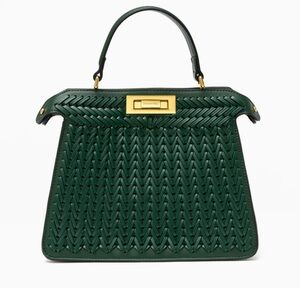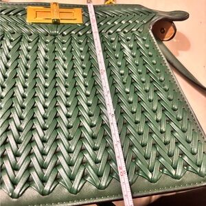 This elegant green handbag features a sophisticated woven design, perfect for any occasion. Its rich color adds a touch of luxury to your ensemble.