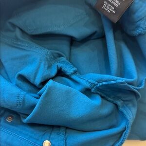 Chic and sleek skinny jeans. Vibrant blue color. Perfect for any occasion. Never worn. 39 inches long with 29 inch inseam and 9 inch rise.