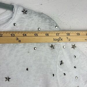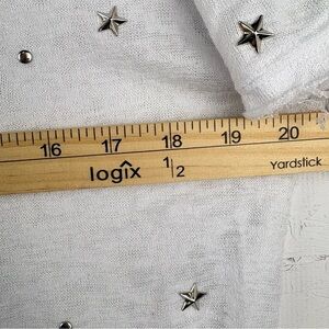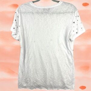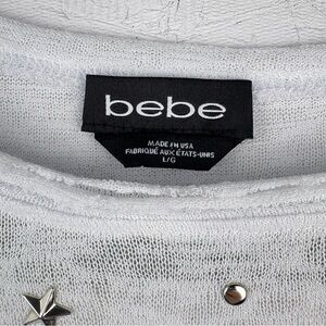 Bebe Womens Stars and Dots Studded White Tee Shirt Sz Large Gauze Fabric Raw Hem