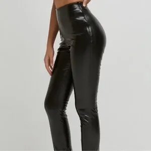 Elevate your style with these sleek black faux leather pants. Perfect for a night out or a chic daytime look.
