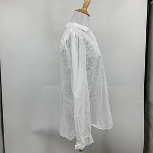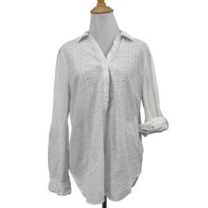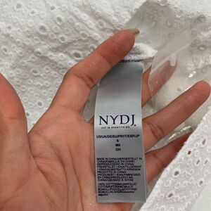 NYDJ Blouse Womens S Small White Fit Is Everything Eyelet Tab Sleeve Shirttail