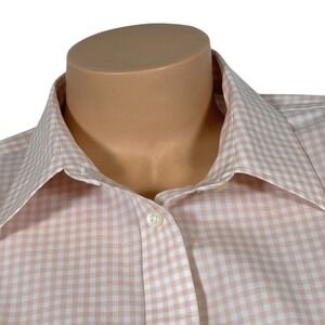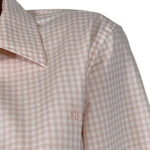 Lauren Ralph Lauren Women's Size LARGE Peach Gingham Button Down Shirt Non Iron