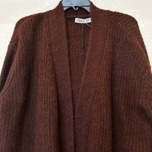 NWOT Zara Burgundy Knit Cardigan Sweater With Pockets