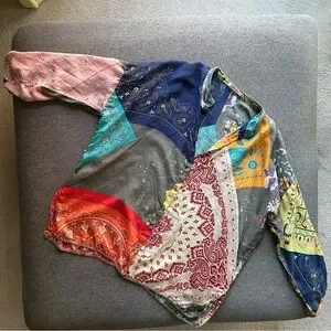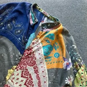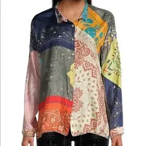 Johnny Was Adelaide 100% Silk Patchwork Long Sleeve Button Down Blouse Small