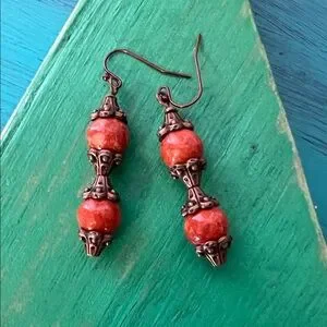 Earring’s are 1.25” in length and are handmade by Shelly, one of a kind jewelry. Copper hardware.