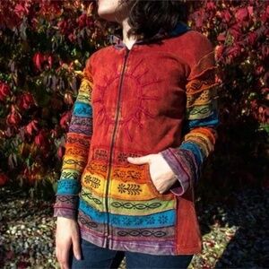 Greater Good Network Hoodie Sweatshirt Womens Size XXL Sunshine Rainbow Full Zip Hippie patchwork BOHO