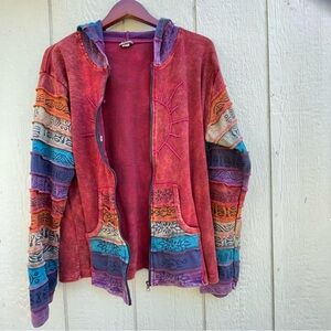 Greater Good Network Sweatshirt Womens XXL Sunshine Zip Hoodie Patchwork BOHO