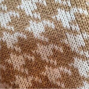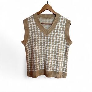White & Tan houndstooth sleeveless knit V-neck vest. Wear with pleated trousers & loafers for a retro look. Perfect condition, no flaws!