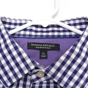 Banana Republic Mens XL Shirt Button Up Non Iron Slim Fit Checked Blue