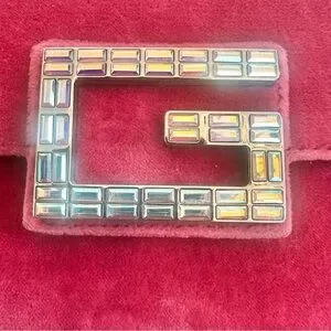 Authentic Gucci Velvet Crystal Square G Shoulder Bag in light raspberry rose.
