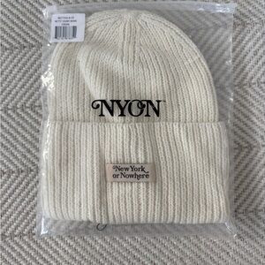 NYON New York or Nowhere Motto Cream Knit Beanie