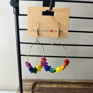 Rainbow Stars & Gold Dangly Hoop Earrings NEW