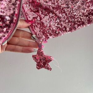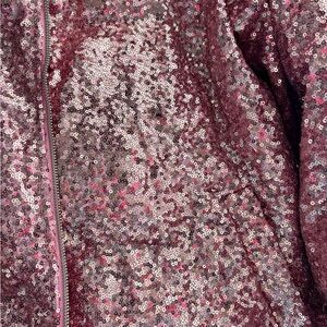 Super fun pink sequin puffer coat. Adds flair to any look.