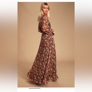 Lulus Autumn Ditsy floral long sleeve wrap maxi dress