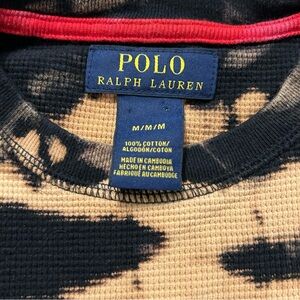 Polo Ralph Lauren Custom Bleach Dye Black Waffle Knit Thermal Shirt Size Medium