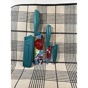 Pioneer Woman Sweet Romance Stainless Steel Knife 2Pc Set W Sheath Floral Green