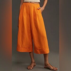 Anthropologie Maeve Linen Pleat-Front Wide-Leg Culottes Orange size 10