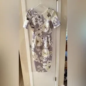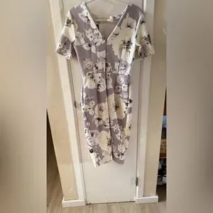 Elegant floral print dress in a soft gray hue. Perfect for any occasion.