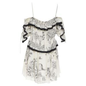 Delivery Duty Paid included – new VALENTINO Garden illustration print silk off shoulder lace up dress IT40 SReference: TGAS/B01216Brand: ValentinoDesigner: Pier Paolo PiccioliModel: Garden print dressMaterial: SilkColor: Beige, BlackPattern: AbstractClosure: ZipExtra Details: Garden illustration print silk. Off shoulder. Laced up detail on sleeve. Ruffle tier. Mini dress.Estimated Retail Price: USD 6200Made in: ItalyCONDITION:Condition: New with tags. Comes with: Designer tags. SIZINGDesigner size: IT42Size reference: US4-6 / UK10 / IT42 / FR38 / S-MMEASUREMENTS: Shoulder to shoulder: 23cm / 9"Chest: 42cm / 16.4"Waist: 40cm / 15.6"Hip: 48cm / 18.7"Length: 88cm / 34.3"Measurments: length: 880 mm