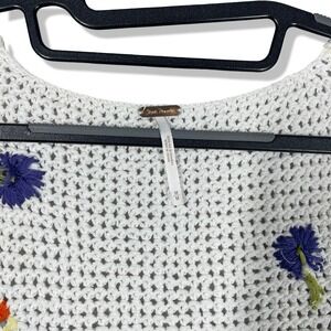 Free People Knit Crochet Crop Button Up Top Womens M White Boho Cottagecore