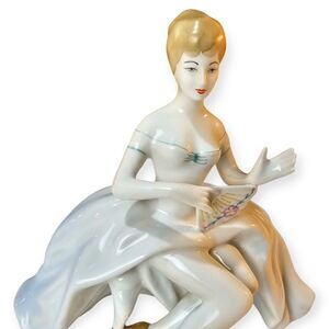 Vintage Girl Sitting With Fan Porcelain Sculpture