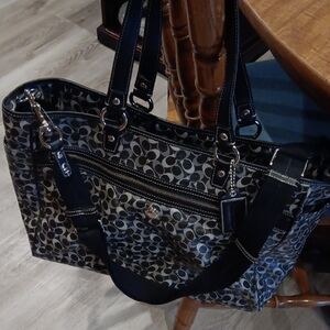 Sophisticated Coach diaper bag with the stylish coach pattern. Ideal for everyday use..comes with a changing pad. Many pockets inside and out. excellent used condition.