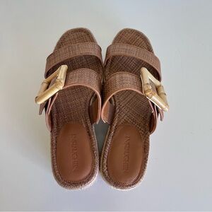 J. McLaughlin Fleur Cuoio Bamboo Buckle Espadrille Platform Slip on Wedge Sandal