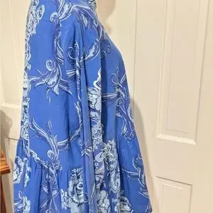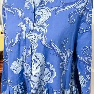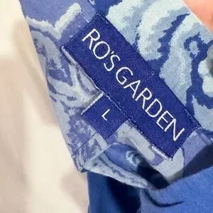 Gorgeous blue floral button-down tunic top from bohemian anthro brand Ro’s Garden. Size is large, see measurements in photos; excellent pre-owned condition, made of 100% high quality cotton.