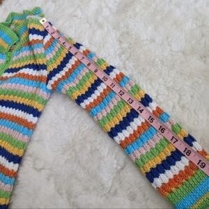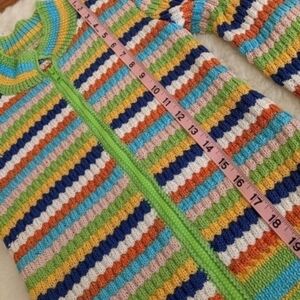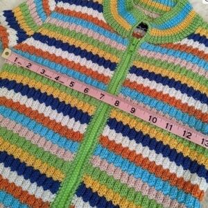 Vintage women's xs handmade knit multi colored striped zippered cardigan sweater