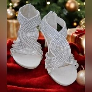 NWT! Rhinestone Embellished Olivia K Women's White Dress Sandal Low Heel Wedding Shoe Size 8. Box not included. Make Offer!