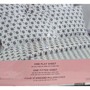 •Features: 1 fitted sheet, 1 flat sheet and 4 standard pillowcases