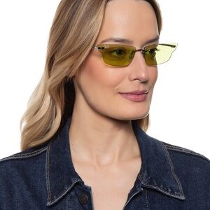 A modern take on a classic silhouette, these butterfly sunglasses are crafted in a frameless fashion for a fresh look.