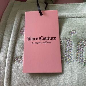 Mint green velour mini tote bag with rhinestone Juicy on front