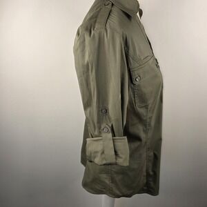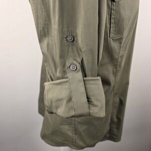 Stylish olive button down shirt. Features roll-up sleeves and chest pockets. Perfect for casual or office wear. NWT only reposhing because it is too small for me.