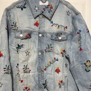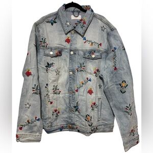 LIFTED ANCHORS Rialto Embroidered Denim Jacket In Blue,multi floral/stars Sz 3x NWT New excellent condition