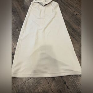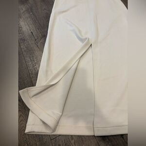 Elegant cream midi dress. Sleeveless design. Front slit detail. Perfect for casual outings.