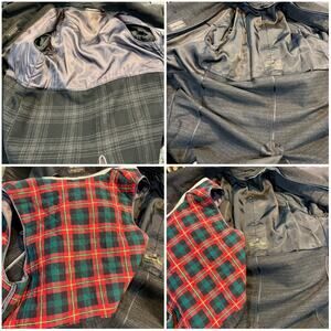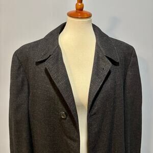 VINTAGE Wool Black Grey Plaid Heavy Overcoat Top Coat zip out liner, Men's L
