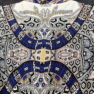 Beautiful Chico’s sleeveless maxi dress in a striking boho-inspired mixed paisley print with rich blues, ivory, black, and subtle accent tones. Flattering, lightweight, and perfect for warm-weather wear.