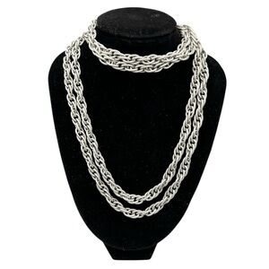 Vintage Silver Tone Rope Chain Necklace Estate Continuous Loop 24”
