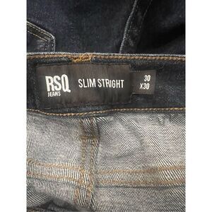 RSQ Slim Straight Jeans. Straight fit through hip, thigh, and leg opening. Traditional five pocket styling. Button waist with zip fly. Approx leg opening: 16" 99% Cotton 1% Spandex. Machine wash. 30x30