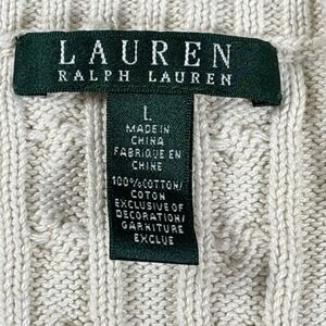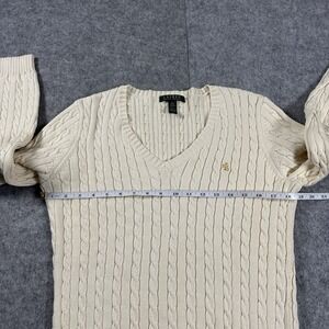 Lauren Ralph Lauren Sweater Cable Knit Cotton V Neck Ivory Cream Womens Large