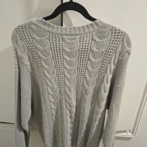 Stay cozy and stylish with this elegant gray cable knit sweater. Perfect for any occasion.