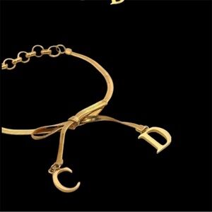 features the signature 'CD' Logo on the ends of the Bow Ribbons in Gold-Tone with an adjustable lobster clasp closure.